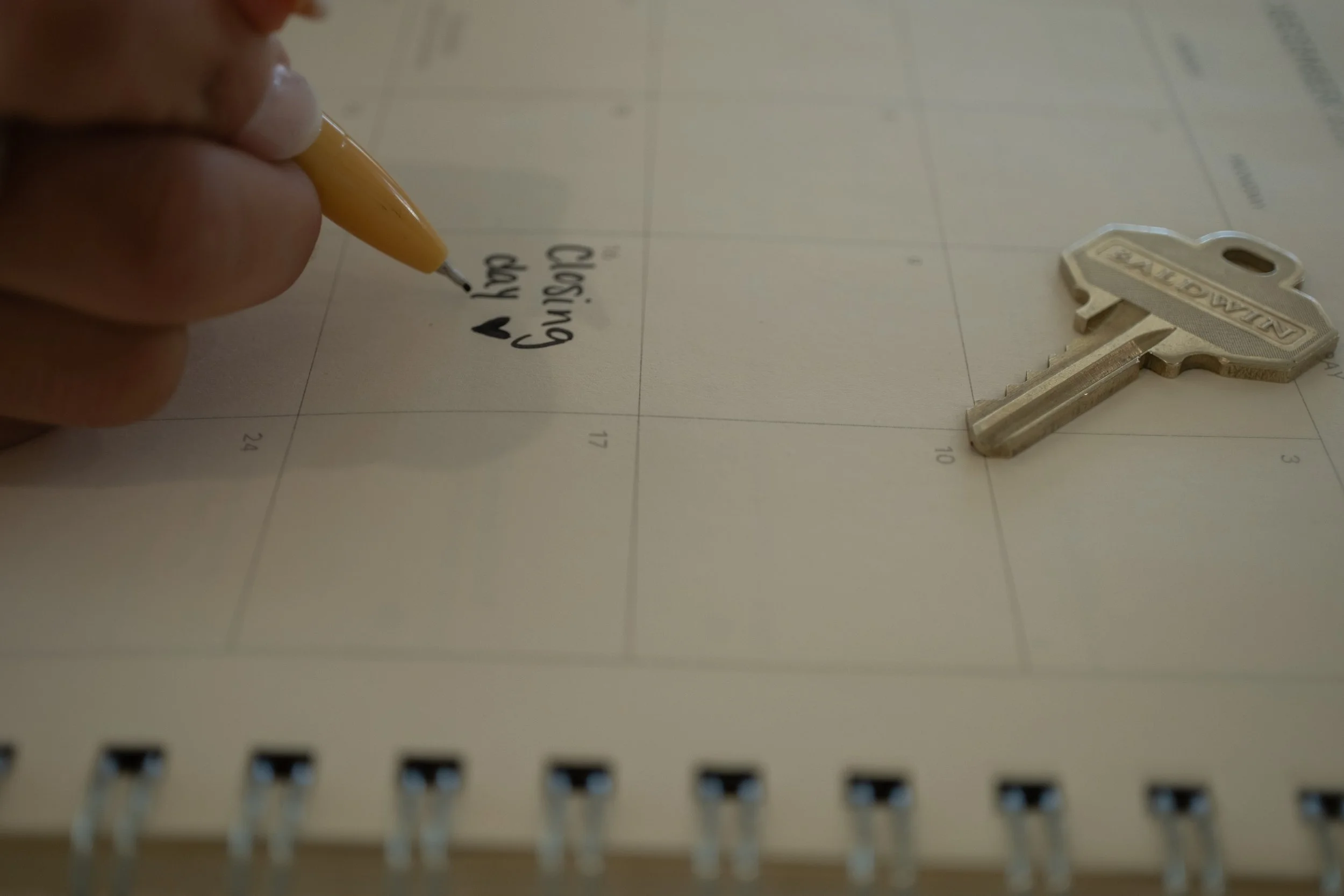 Close-up hands on keys, contract signing, or holding a business card for editorial use.