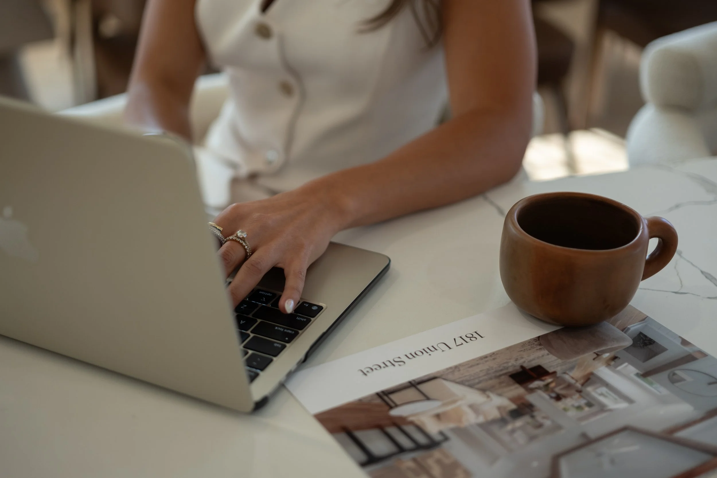 Using a tablet or laptop to illustrate tech-savviness and modern workflow.